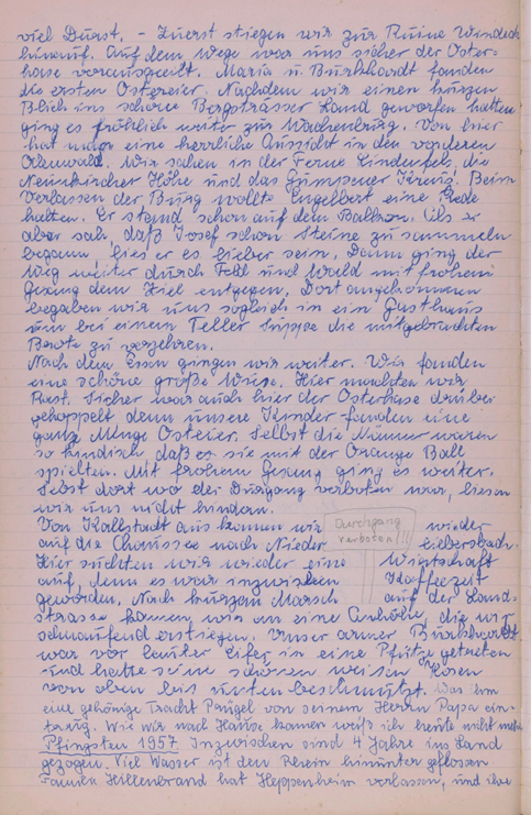 Pfingsten 1957. Inzwischen sind 4 Jahre ins Land gezogen. Viel Wasser ist den Rhein hinuntergeflossen. Familie Hillenbrand hat Heppenheim verlassen, und ihre