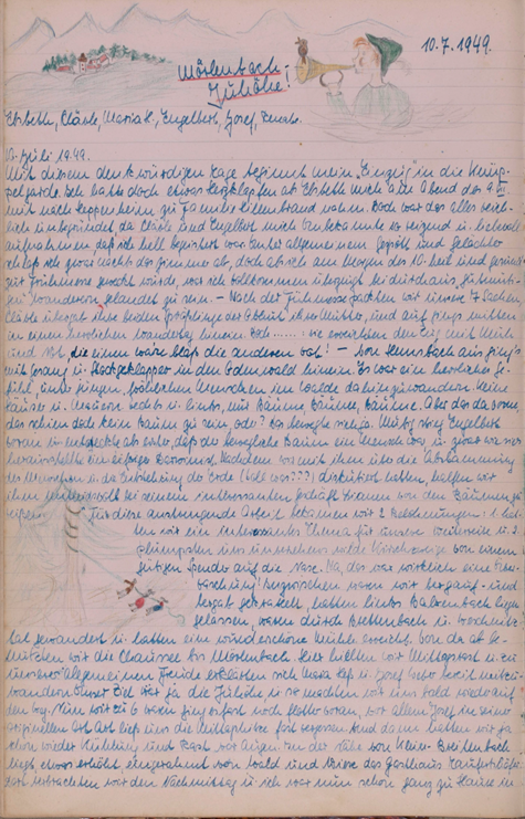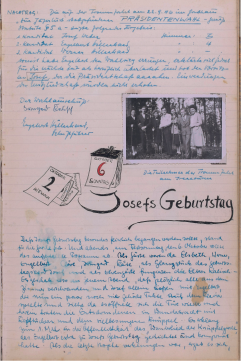 Sept. 1946 – Es fällt mir auch heute nach 4 Monaten nicht schwer, mir die Wanderfahrt nach Krumbach in Gedächtnis zu rufen. Erst die freudig aufgeregten Vorbereitungen einschließlich telefon. Benachrichtigung der Rosenhöhe zwecks Mittagessen und dazu noch viele Besprechungen bis uns der Sonntag früh auf den Beinen fand. Zu einer Zeit, wo wir sonst noch feste schlafen, schielten wir nach dem Himmel und stellten Wetterprognosen auf „Himmel bedeckt“ aber das soll uns noch nicht beunruhigen.