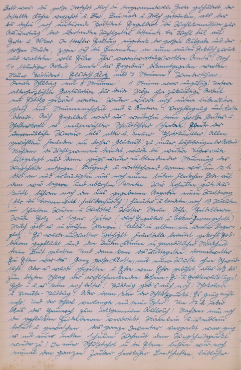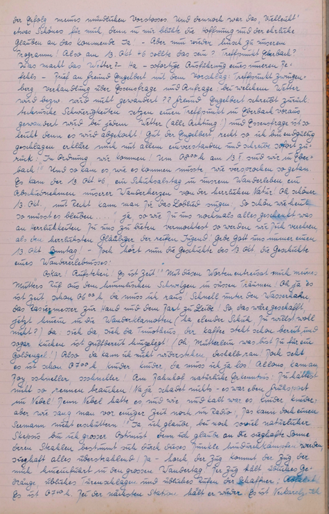 Viele, viele Monate und eine ansehnliche Zahl an Jahren sind seit dem Zeitpunkt vorübergezogen, seitdem ich die letzten Worte in diesem lieben treuen Buche geschrieben! Eine große stille Sehnsucht nach den vorübergegangenen Jahren und eine leise Wehmut über das Nicht-Erleben so mancher schöner Stunden innerhalb der lieben, edlen Freundschaft, der Knüppelgarde beschlich mein Herz, als ich an diesem ruhigen und schönen Abend das Buch der K.G. durchblätterte u. die lieben Worte das hohe Lied edelsten Menschentums geschildert sah. Tiefgründige Wehmut über das Vergangene und Verlorene wechselte mit starker Sehnsucht und hoffendem Glauben an das schöne, liebe Zukunftsbild meines Ich’s innerhalb der K.G. und harret mit gläubigem Vertrauen über den 16. Juli 1950, den Wegscheide-Punkt meiner Inaktivität hinweg, dem zukünftigen stärkeren Verbunden sein mit den lieben Freunden der K.G. entgegen. Zuvor aber möge mein Herz und meine Seele jener großen Freude Ausdruck verleihen, die der unvergessliche Wandertag des 16. Juli 1950 den fröhlichen Teilnehmern bescherte. Mögen meine Worte die innere, große Freude schildern können, die mich und die guten Freunde