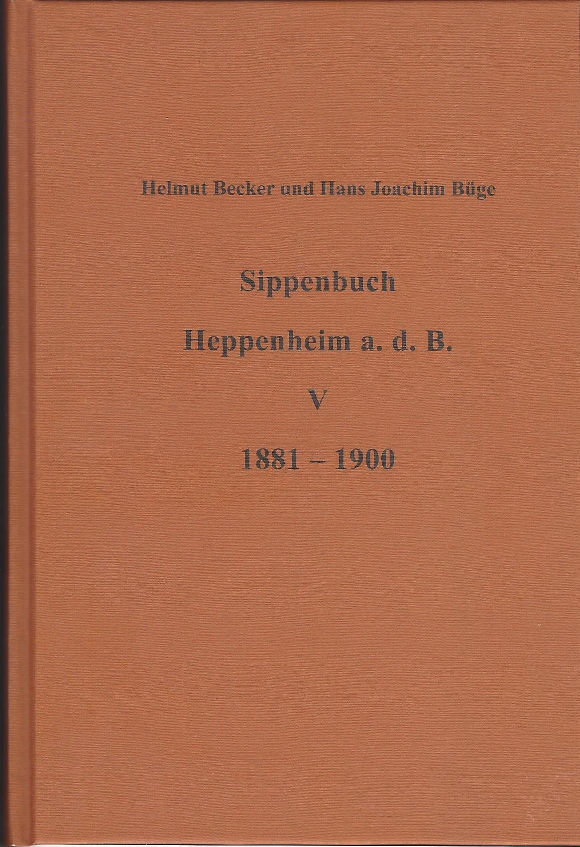 | Sippenbuch Heppenheim a.d.B. V 1881 – 1900 Helmut Becker und Hans Joachim Büge Deutsches Ortssippenbuch Nummer 02.174 herausgegeben von Hans Joachim Büge im Auftrag des Heppenheimer Geschichtsvereins, Heppenheim a.d.B., 2022 Der Preis zuzüglich Versandkosten beträgt 39,00 € Bestellungen an: Manfred Bräuer Ergänzungen und Korrekturen nimmt entgegen: Hans Joachim Büge, Von-Kleist-Str. 9, 64646 Heppenheim |
